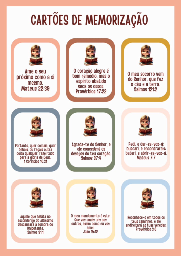 Lindos Cards para incentivar e memorizar versículos bíblicos
